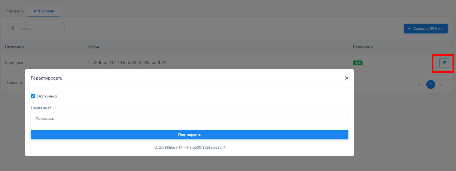 Для редактирования названия ключа, а также для его отключения нажмите значок справа от него. Откроется окно редактирования.