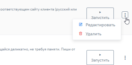 Правее кнопки запуска/остановки расположено меню действий, позволяющее отредактировать или удалить задачу.